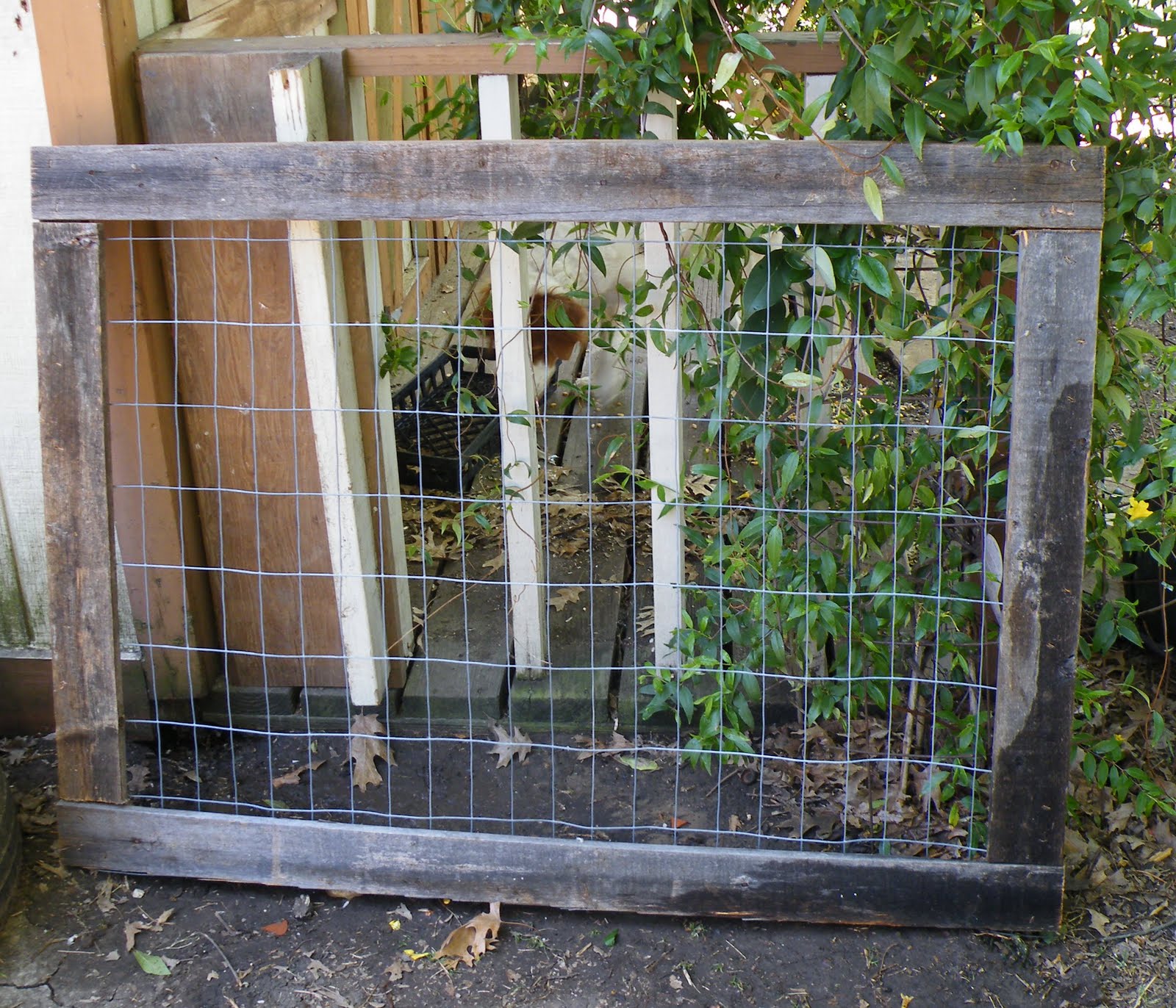 He has even been working on a simple little fence (to protect from golden-haired marauders). It will also be used as a trellis for the cucumbers and zucchini that I planted next to it: